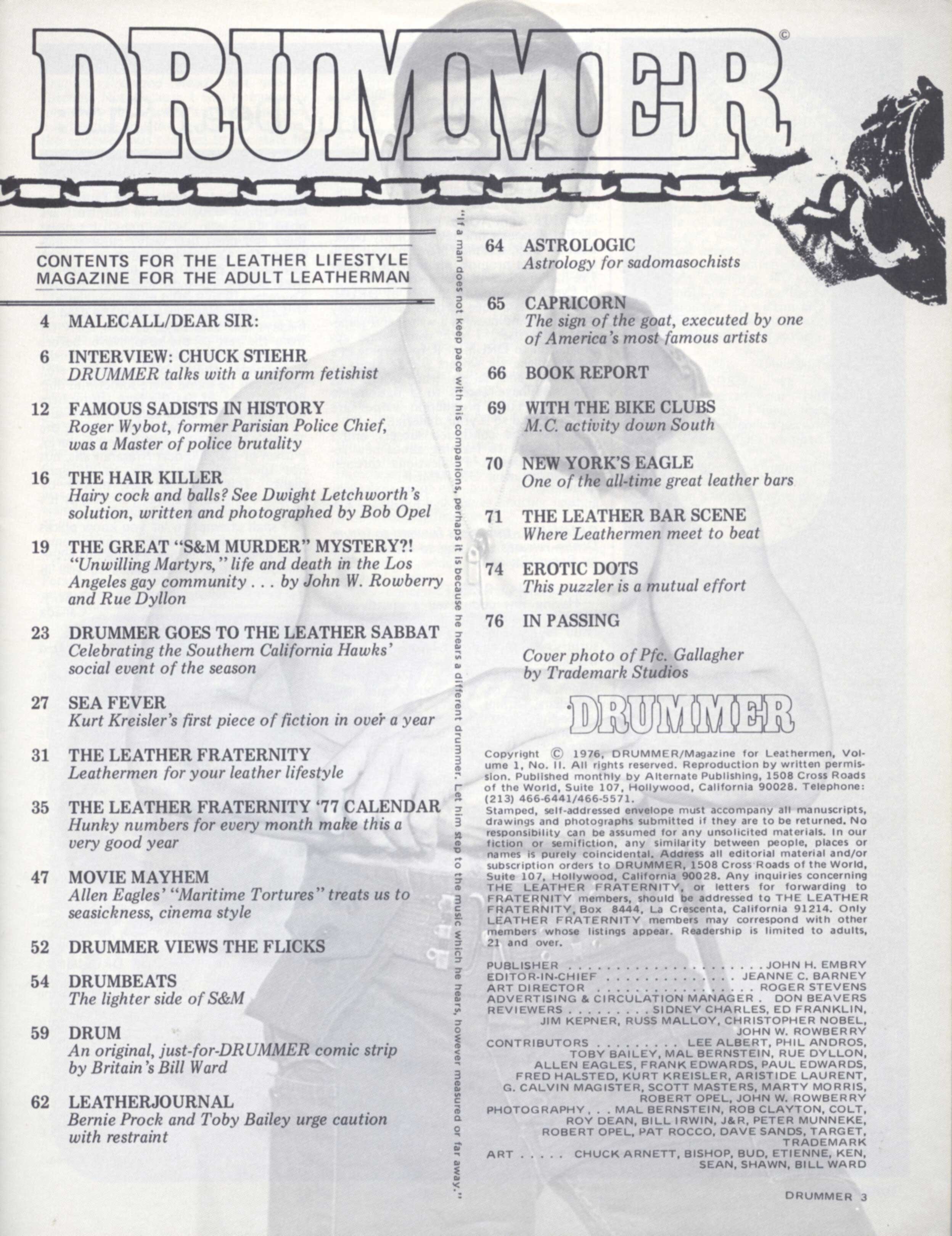 Photography: Mal Bernstein, Rob Clayton, Colt, Roy Dean, Bill Irwin, J&R, Peter Munneke, Robert Opel, Pat Rocco, Dave Sands, Target