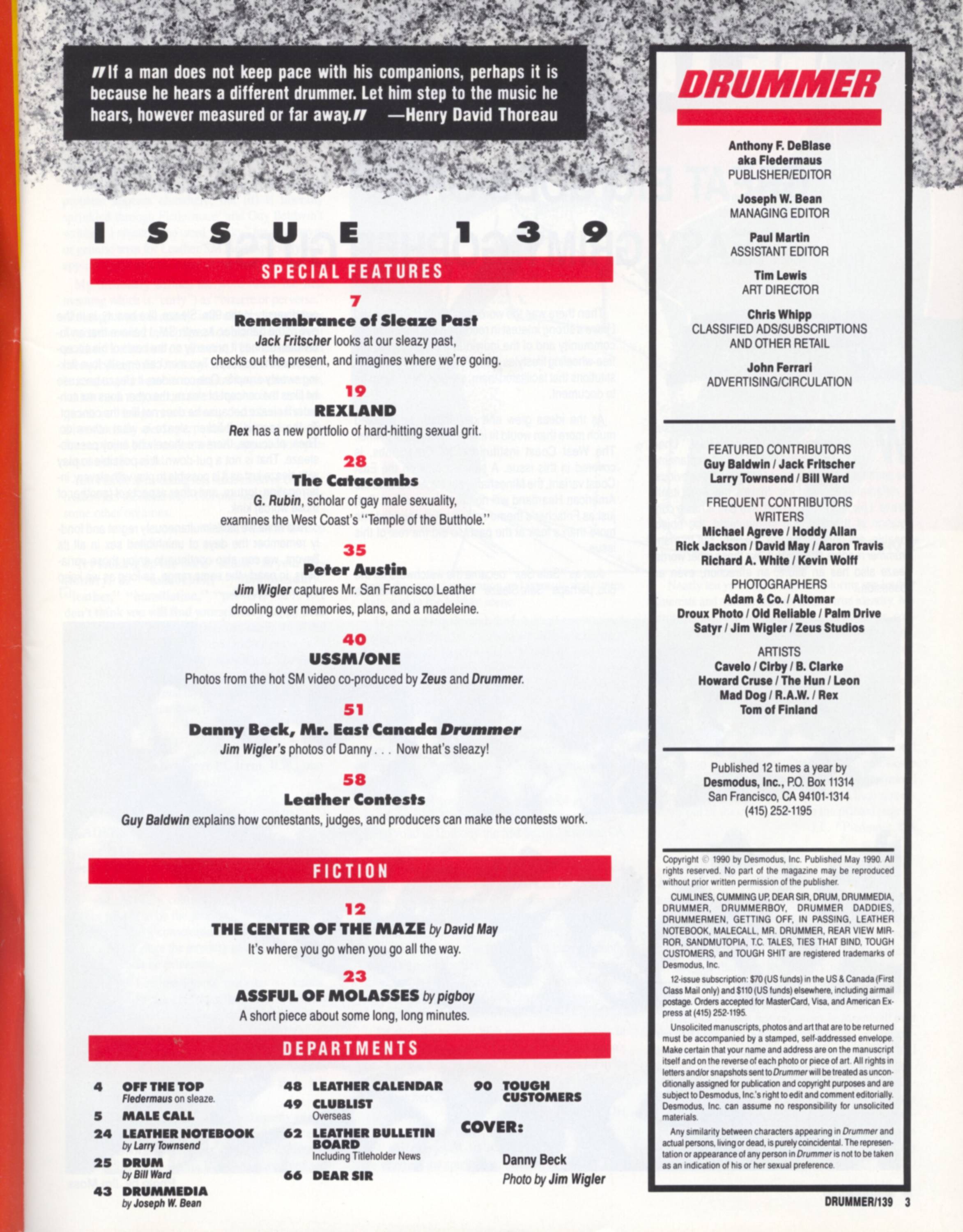 Editorial Mention: in Deblase editorial, p. 4, referencing Fritscher as source for issue’s theme